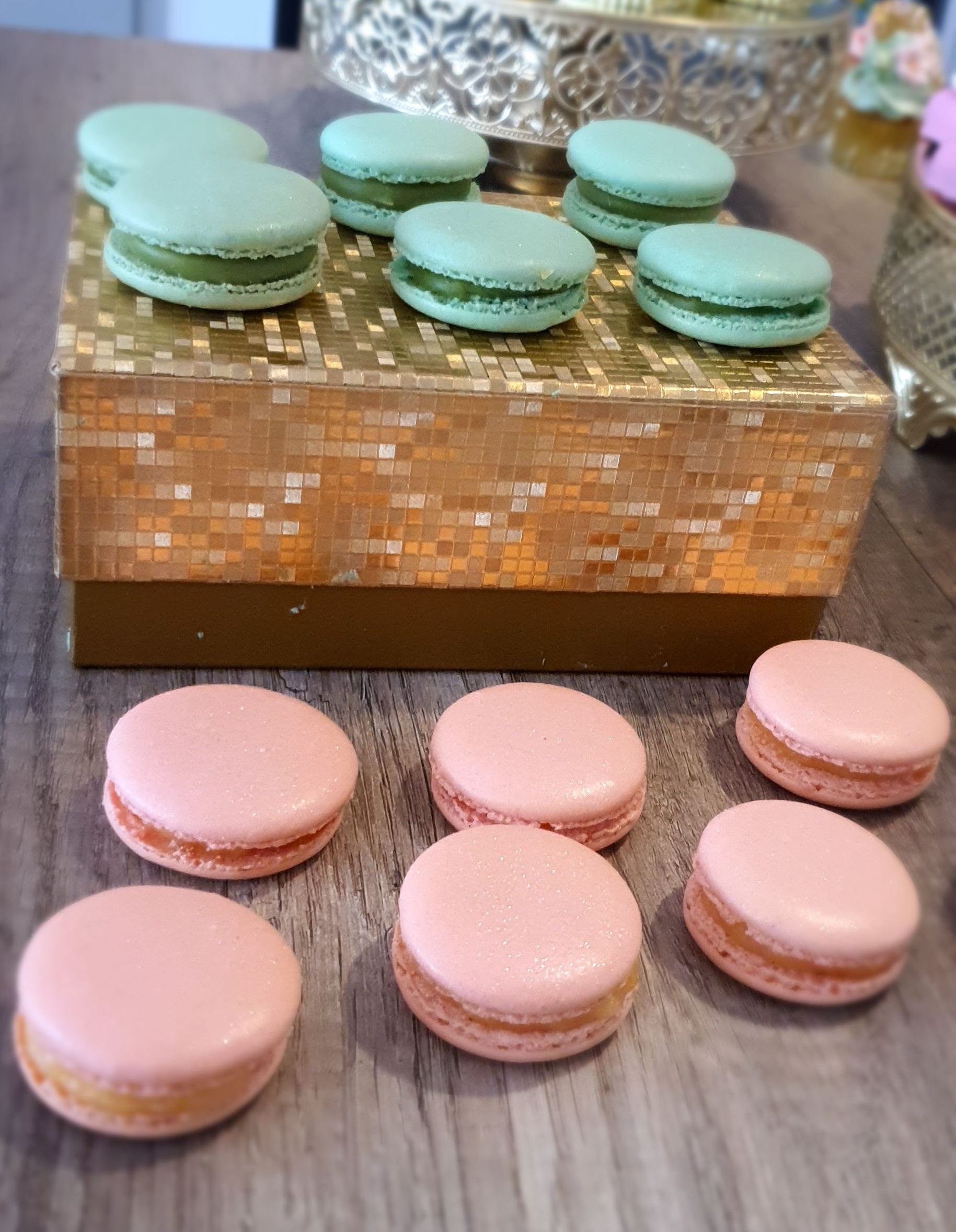 Généralement, il comprend 2 biscuits superposés, une ou plusieurs ganaches et des décorations comestibles.